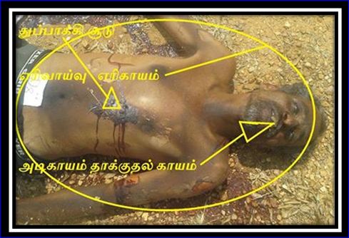 மார்பிலும் குண்டுபடும்படிச் சுட முடிந்தது? கொல்லப்பட்டவர்கள் உடல்களில்